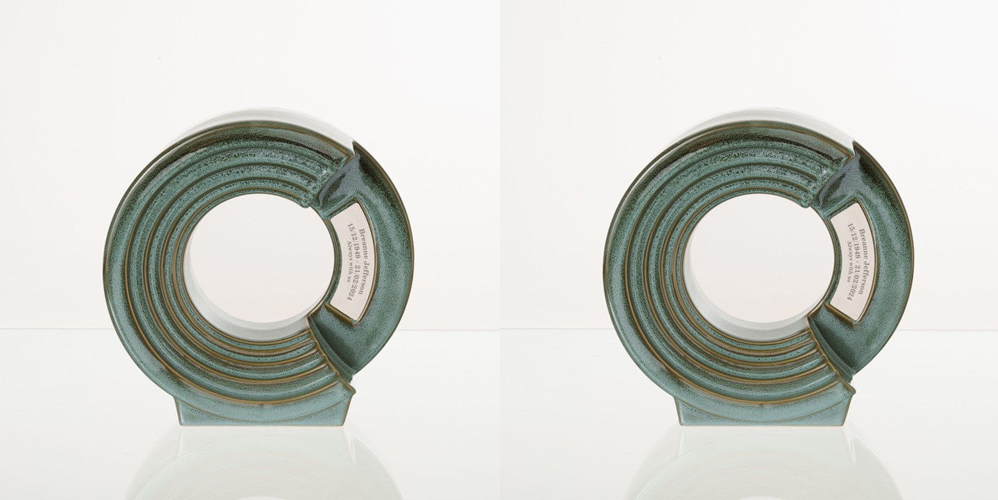 Crafted using the finest ceramic materials and premium glazes, each Solace urn is fired twice at 1200°C, ensuring exceptional strength, durability, and long-lasting beauty. The urn is suitable for the ashes of an adult and includes a dedicated area for personalized engraving, allowing for a deeply personal tribute.